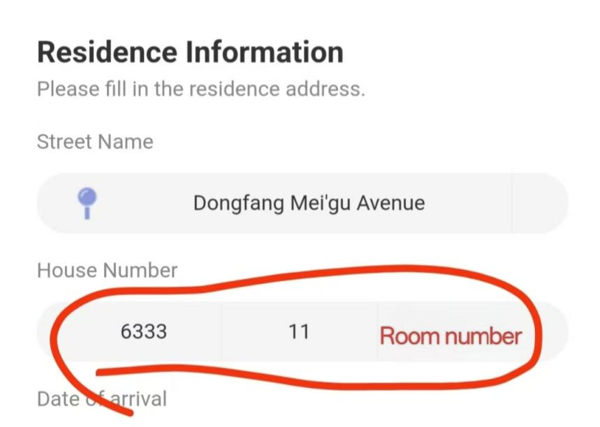 6. 输入街道号码6333,楼栋号码11,以及你的寝室号
