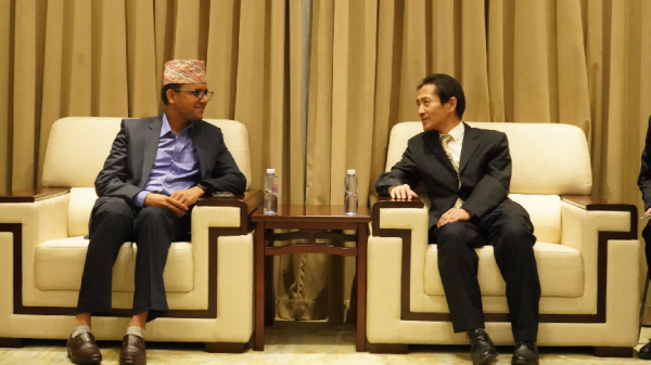 (Mr. Trilochan Pokharel exchanged views with the President Wu Zhong)