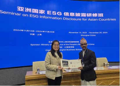 Mr. Sovit Thapaliya, Senior Journalist at Nepal's Chhanika Media. From November 14 to 20, 2024, he attended the 2024 Seminar on ESG Disclosure for Asian Countries, sponsored by the Ministry of Commerce of China and organized by Shanghai Business School.