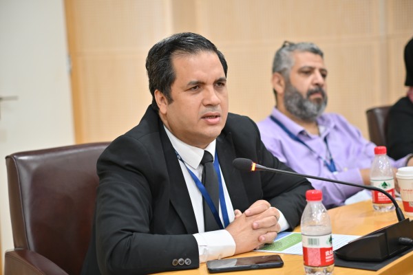 (Mr. Ashraf Oukasha Abdellatif Ahmad delivering a speech during a discussion at the Shanghai Technology Entrepreneurship Center)