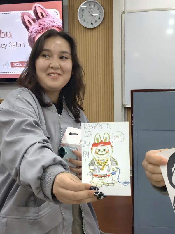 在本次中文沙龙活动中,留学生们不仅学习了与二次元文化相关的特色中文词汇,还亲手设计属于自己的 LABUBU 形象,并登台讲述原创故事,用中文传递创意与情感。活动现场气氛热烈,中外学子在互动交流中增进理解、建立友谊,真正实现了“以文化人、以文促融”。