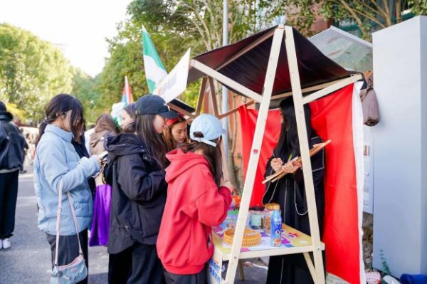 活动现场精心布设的28个中外民族展位中,中外展位都引人注目。其中国际学生的展位:越南京族展位将特色糕点品鉴与手工体验相结合,让师生在动手实践中触摸东南亚文化脉络;塔吉克斯坦塔吉克族带来的干果糕点风味醇厚,传递着中亚饮食文化的独特魅力;柬埔寨高棉族通过特色雕塑作品与民族传统布料展示,以匠心造物勾勒出中南半岛的文明印记等。来自各国的留学生热情地向学校师生介绍本国文化,现场气氛热烈,欢声阵阵。