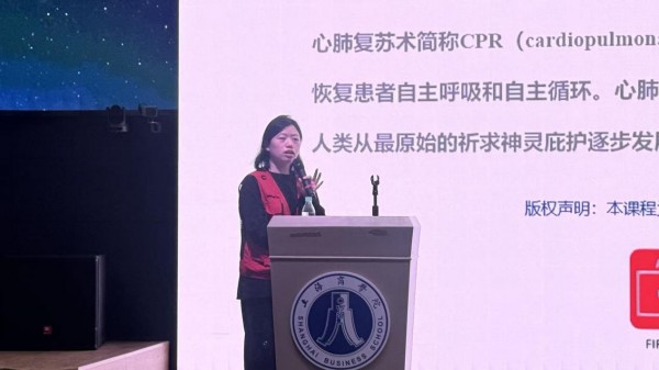 为进一步普及急救知识,增强教职工应对突发状况的现场救护能力,营造“人人学急救,急救为人人”的校园安全氛围,1月16日下午,由机关第一党支部、学生处、国际教育学院与继续教育学院联合主办的“应急抢救”专题培训在中山西路校区107沉浸式教室举行。本次培训特邀急救推广中心王梦捷团队聚焦心肺复苏(CPR)与自动体外除颤器(AED)使用展开,旨在提升教职工在危急时刻的自救互救能力。