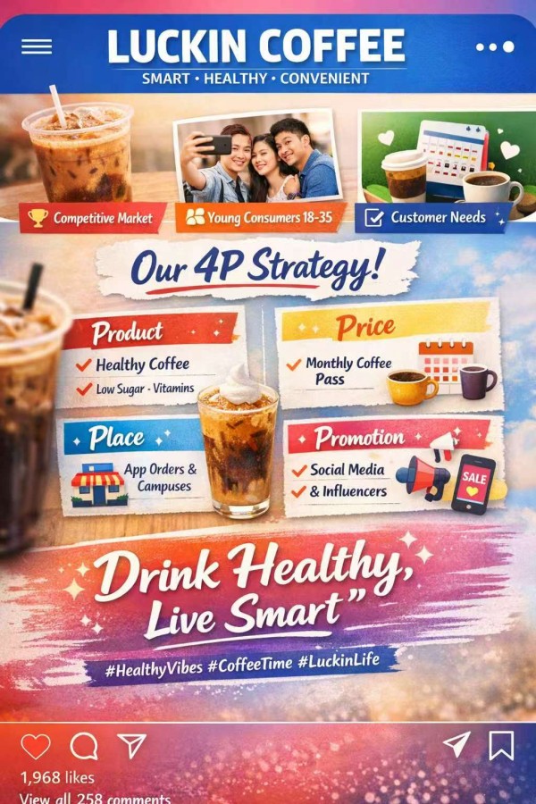 理论分享结束后,活动进入核心实践环节——中外学生混合分组,协作完成咖啡品牌营销海报设计任务。工坊活动主讲人鼓励大家结合自身文化特色、创意想法与营销逻辑,自主完成海报构思、设计与内容打磨。各组留学生快速分工、密切配合,融入本国文化元素与国际营销思路,大家积极讨论、互相启发,全程氛围轻松热烈。来自蒙古的留学生Batmunkh Bolorsuvd说道:“和大家一起组队特别有意思,我们的思维方式不一样,刚好可以互补,从设计主题到画面排版,我们一起商量着完成,不仅学会了营销海报的设计思路,还感受到了团队协作的快乐。”